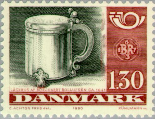 Дания, 1980, 1.30 Kr. П. высокая. 12 (3/4). черная и коричнево-карминная
