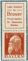 Встречаются сцепки марок, напечатанные тет-бешем. Марка также издавалась в буклетах с купонами. На одном из рекламных купонов (R 13) — надпись: «Научное учреждение для пивоварен. Частный институт доктора Доменса, Мюнхен».