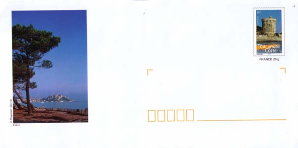 На конверте: город Кальви. В бухте Калви во время взрыва потерял глаз адмирал Нельсон.