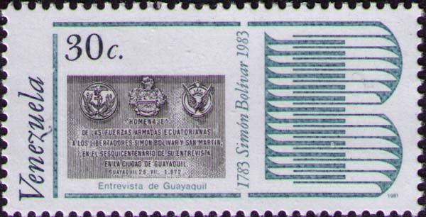 Мемориальная доска о встрече Боливара и Сан-Мартина в Гуаякиле (Эквадор).
