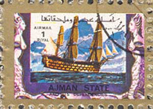 Флагманский корабль Нельсона в Трафальгарской битве HMS «Victory» (марка уменьшенного формата).