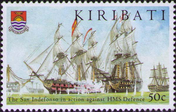 Испанский 74-пушечный корабль «San Indefonso» в бою против британского 74-пушечного корабля HMS «Defence».