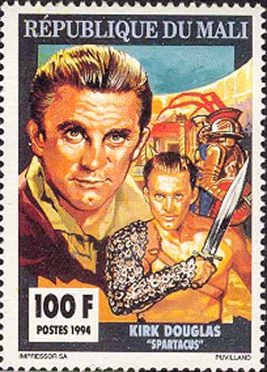 Марка издана в блоке. На поле блока кадры из фильмов с участием Кирка Дугласа: «Тропы славы» («Paths of Glory», 1957, США, режиссер Стенли Кубрик, по роману Хэмфри Кобба, Кирк Дуглас сыграл роль полковника Докса), «Викинги» («The Vikings», 1958, США, режиссер Ричард Флейшер, по роману Эдисона Маршалла, Кирк Дуглас сыграл роль Эйнара), «Двадцать тысяч лье под водой» («20 000 Leagues Under the Sea», 1954, США, режиссер Ричард Флейшер, Кирк Дуглас сыграл роль Неда Ленда).