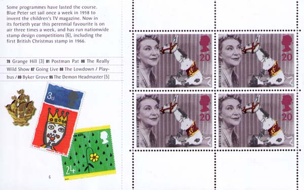 Буклет почтовых марок, посвященный 75-летию Британской вещательной корпорации. На страницах буклета — кадры из телепостановок ВВС: «Поющий детектив» и «Тонкая голубая линия», а также плакат с изображением пирата, призывающий своевременно плачивать телевизионную и радио-лицензии.