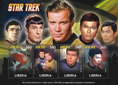 Персонажи телесериала «Звёздный Путь: Следующее Поколение»: лейтенант-коммандер Монтгомери Скотт (актер Джеймс Духан); коммандер Спок (актер Леонард Нимой) и капитан Джеймс Тиберий Кирк (актер Уильям Шатнер); лейтенант-коммандер доктор Леонард «Боунз» МакКой (актер ДеФорест Келли); лейтенант Хикару Сулу (актер Джордж Такеи).