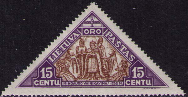 Литва, 1932, 15 c. П. высокая. 14 и б/з. коричневая и фиолетовая