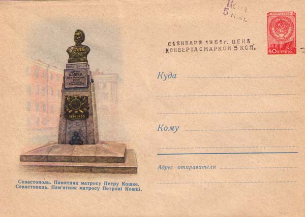 Памятник матросу Петру Кошке в Севастополе (скульпторы братья Иосиф и Василий Кейдуки, архитектор В. П. Петропавловский, 1956). Такой же памятник установлен на родине героя — в селе Ометинцы Винницкой области.