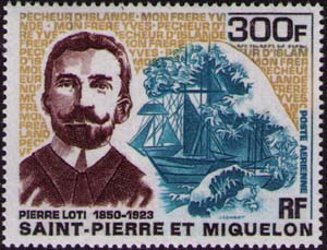Портрет Пьера Лоти, названия его произведений, парусный корабль.