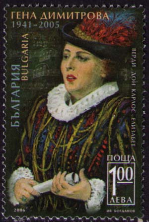 Болгарская певица Гена Димитрова (1941—2006) в роли королевы Елизаветы в опере Верди «Дон Карлос», созданной по мотивам пьесы Шиллера (по фотографии Ивана Богданова).