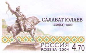На марке: памятник Салавату Юлаеву в Уфе (скульптор Сосланбек Тавасиев, архитектор И. Г. Гайнутдинов, 1967).