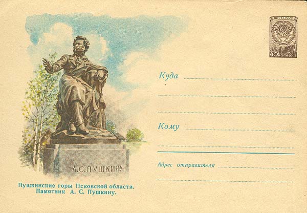 Псковская область. Пушкинские Горы. Памятник Александру Пушкину (скульптор Екатерина Белашова, архитектор Лев Холмянский, 1959).