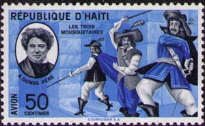 Портрет Александра Дюма, иллюстрация к роману «Три мушкетера» — мушкетеры в бою.