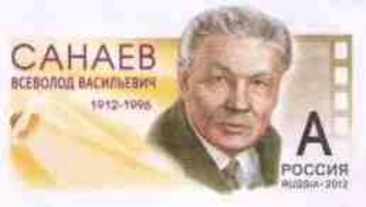 На марке: портрет Всеволода Санаева.