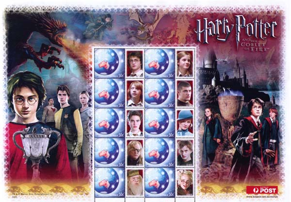 Марка издана в малом листе из десяти марок с купонами. На купонах герои фильма «Гарри Поттер и Кубок огня» («Harry Potter and the Goblet of Fire», 2005, Великобритания/США, режиссер Майк Ньюэлл): Гарри Поттер (актер Дэниел Рэдклифф), Гермиона Грэнджер (актриса Эмма Уотсон), Рон Уиззли (актер Руперт Гринт), Виктор Крум (актер Станислав Ланевский), Седрик Диггори (актер Роберт Паттинсон), Флер Делакур (актриса Анжелика Манди), профессор Грюм (актер Брендан Глисон), Барти Крауч младший (актер Дэвид Теннант), профессор Албус Дамблдор (актер Майк Гэмбон), Рита Скитер (актриса Миранда Ричардсон).