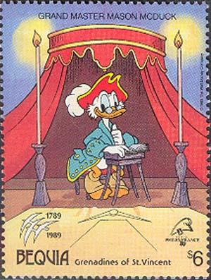 Philatelia.Ru / Французская революция / Марки / Гранд-мастер масонской ложиСерия: 200-летие Французской революции. Международная филателистическая выставка «PHILEXFRANCE’89». Герои мультфильмов Уолта Диснея в ролях персонажей революции